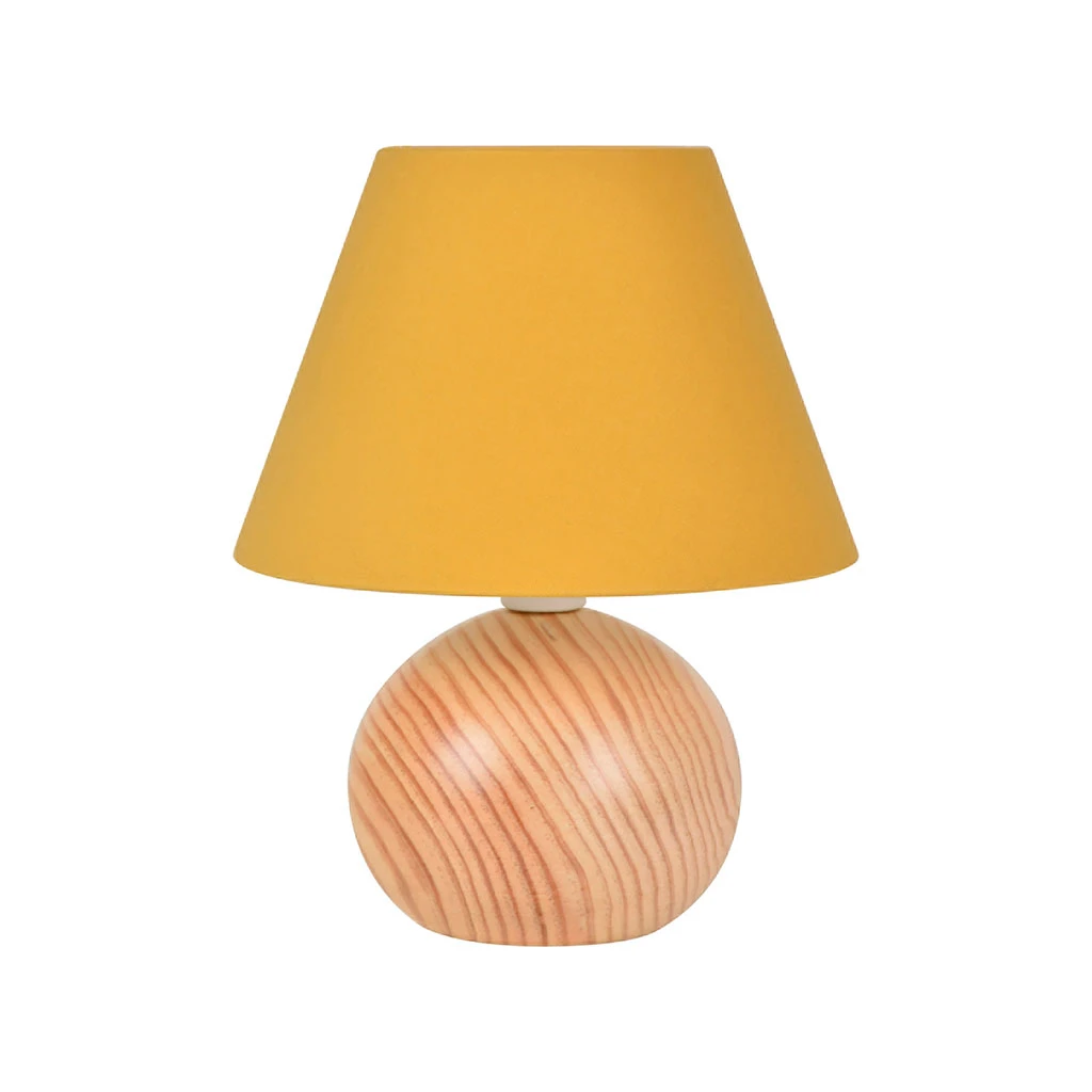 Lampe boule en bois. Abat-jour conique en coton. E14/40W Ampoule non fournie.
