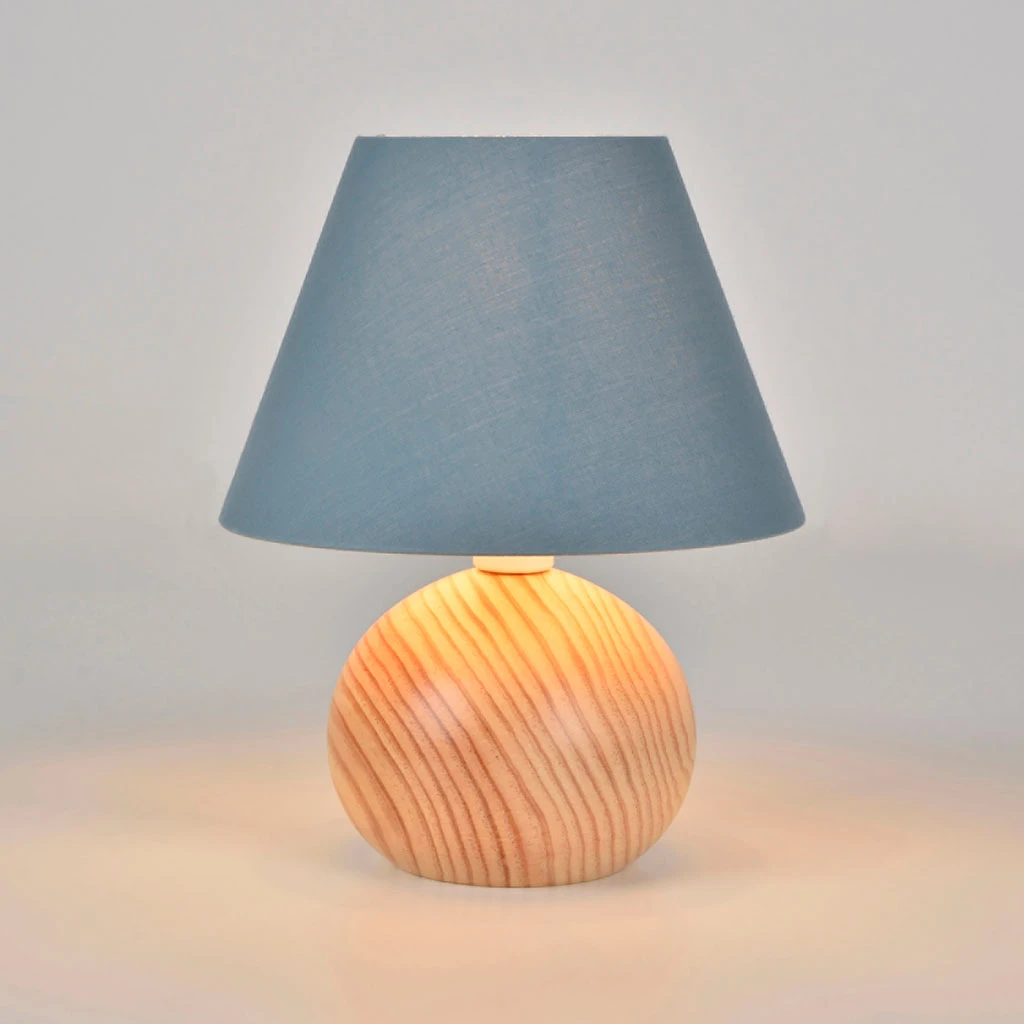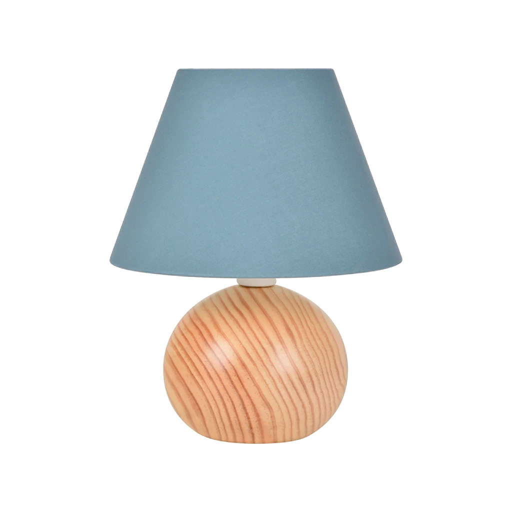Lampe boule en bois. Abat-jour conique en coton. E14/40W Ampoule non fournie.