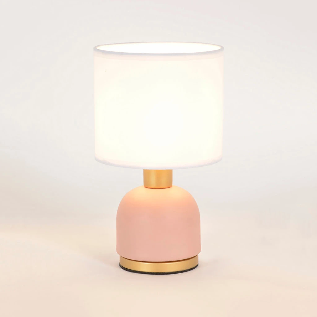 Lampe en métal peint mat bicolore PM. Abat-jour cylindre en coton uni. E14/40W Ampoule non fournie. H26 – D15 cm