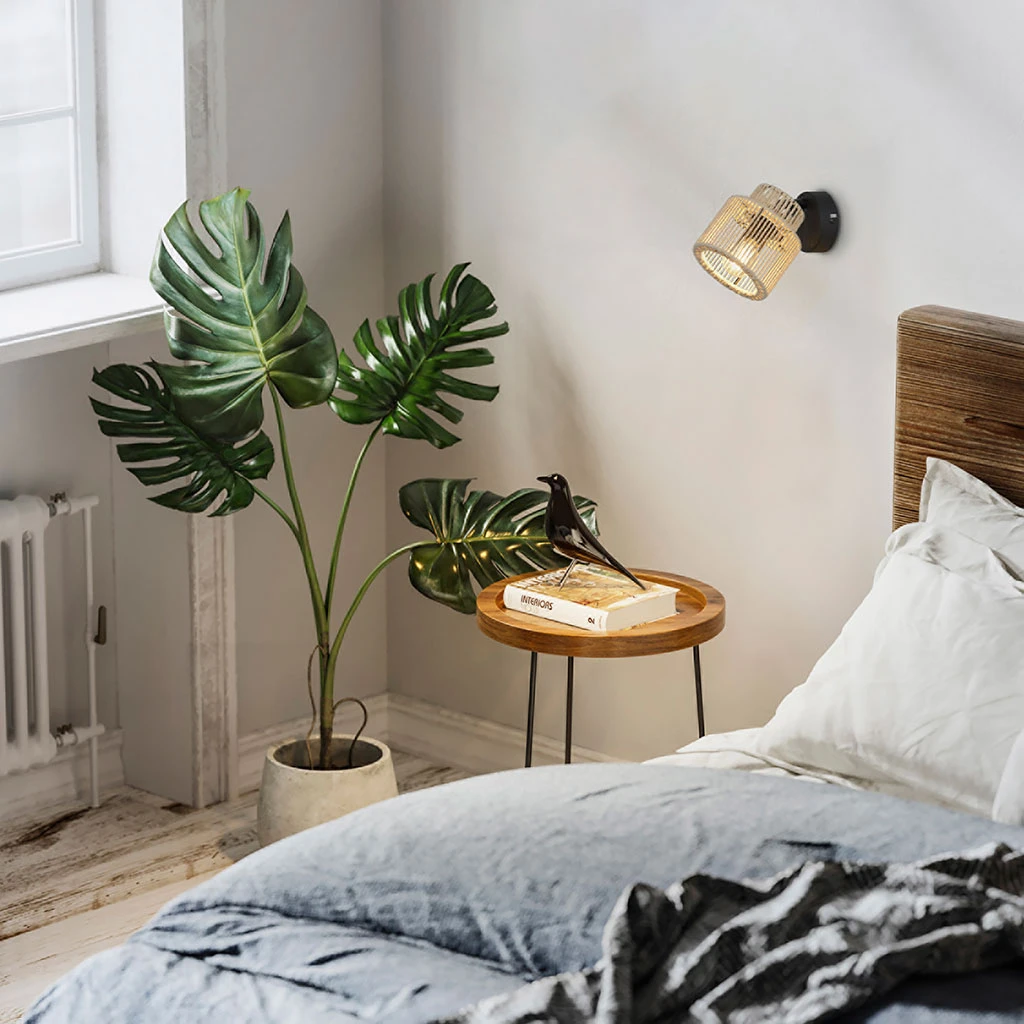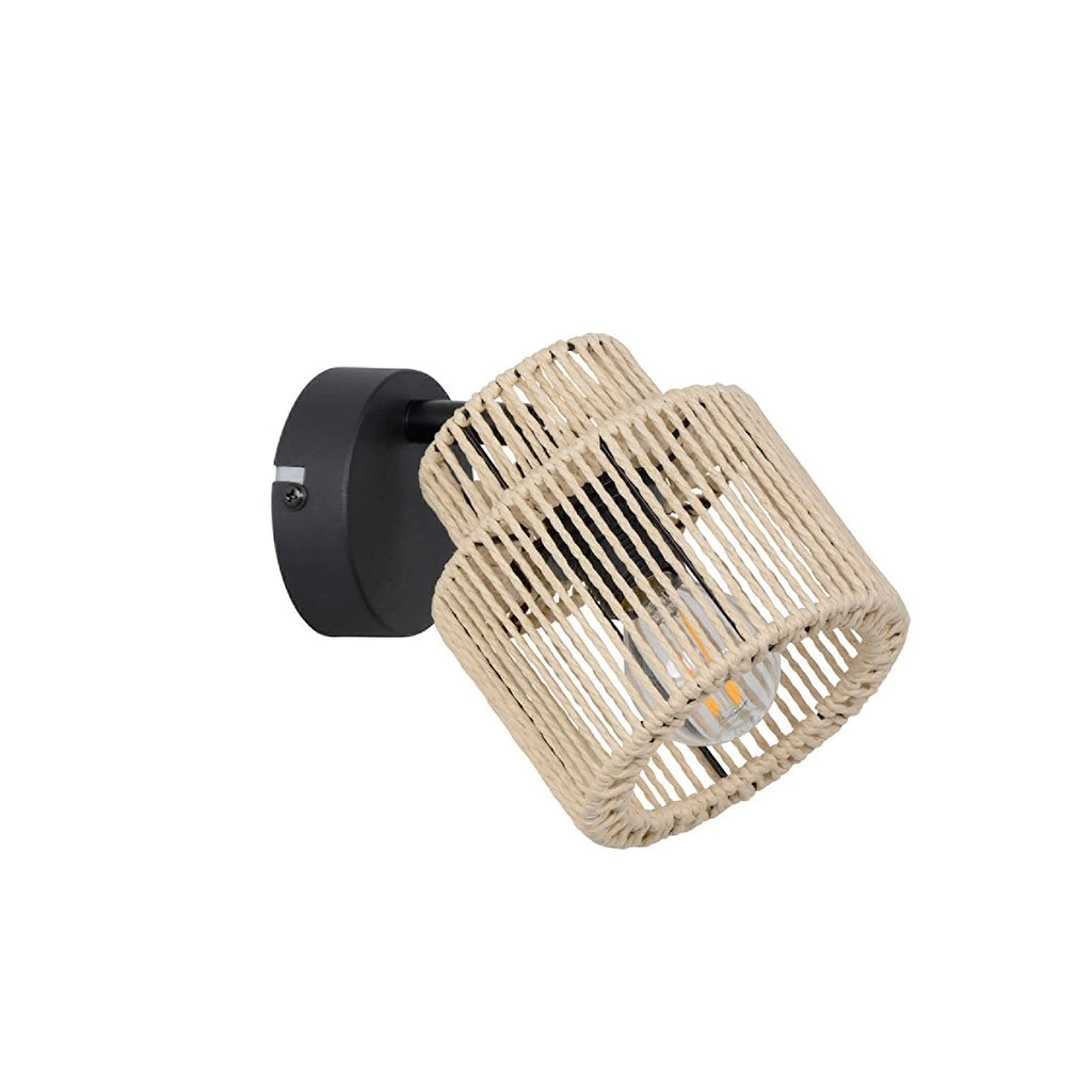 Spot 1 lumière base métal et tête articulée en cordelette de papier tressée à la main. Coloris : naturel. IP20. H15cm-L11cm-P19cm. Classe 1. E14-40W.