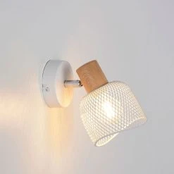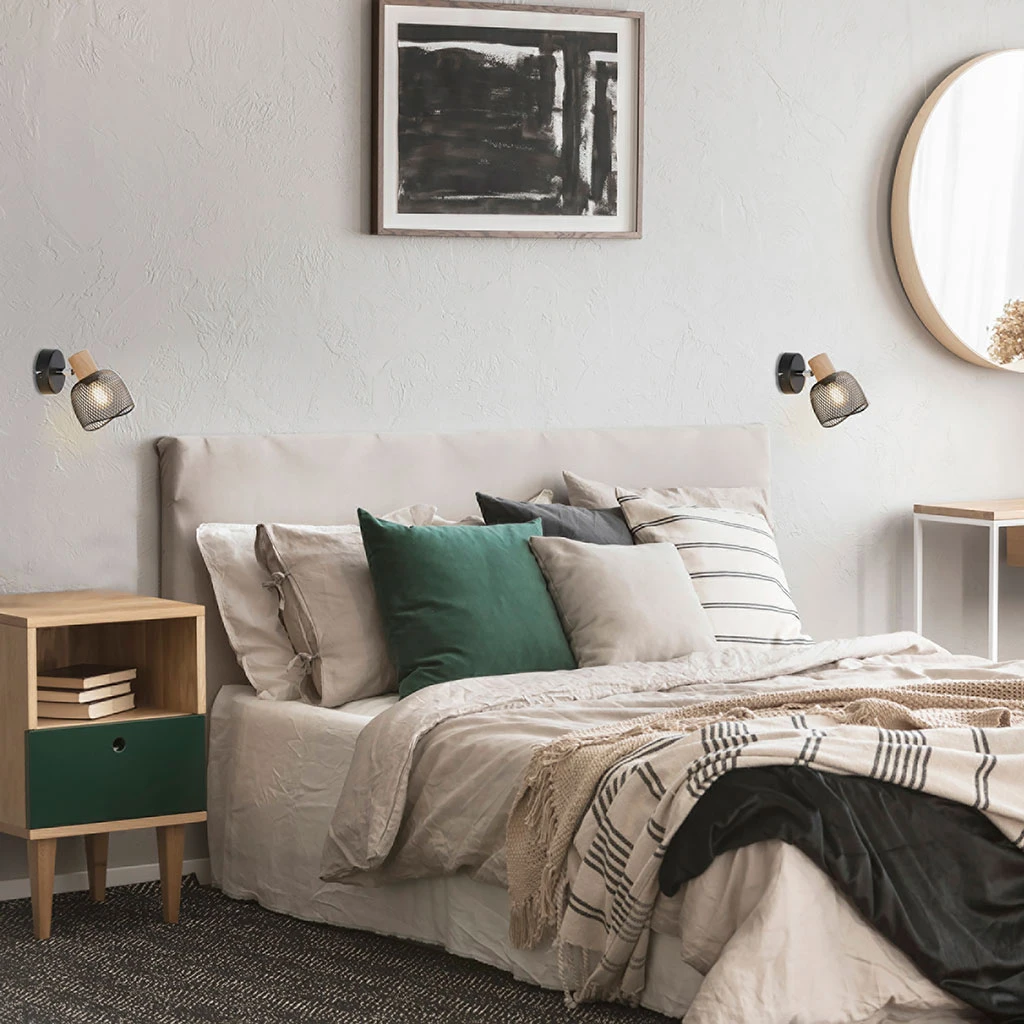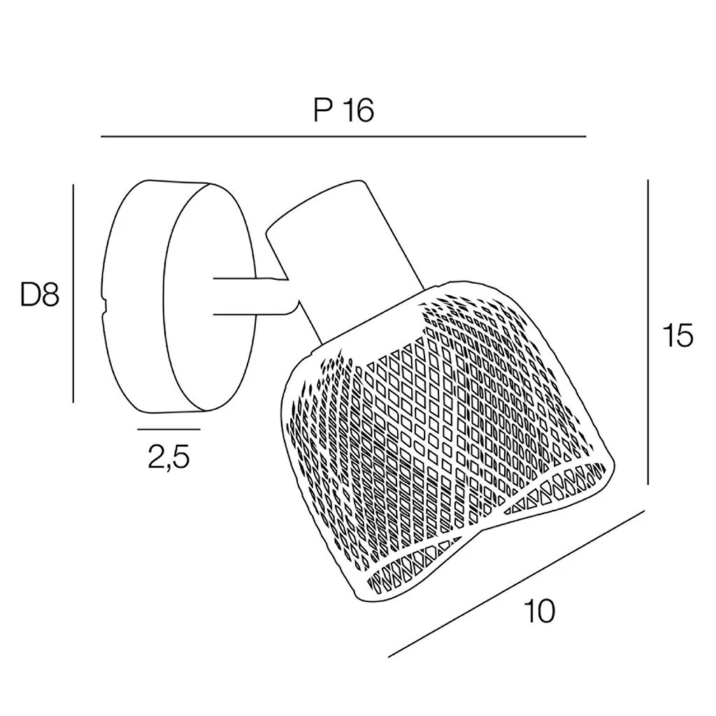 Spot 1 lumière base ronde en métal et finition effet bois. Abat-jour en métal grillagé peint. Tête orientable. Coloris : noir. IP20. H17,75cm-L10cm-P15cm. Classe 1. E14-25W.