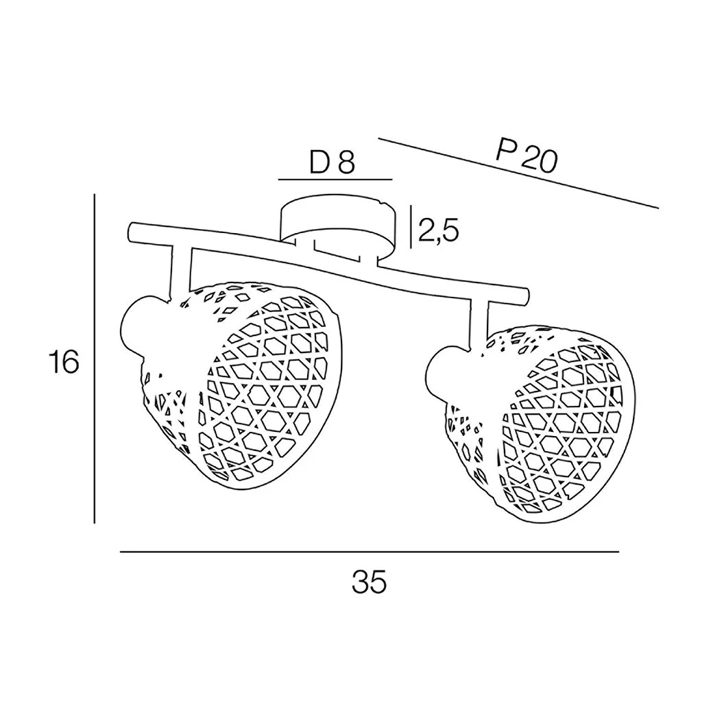 Têtes articulées. Coloris : naturel. IP20. L35cm – P20cm – H16cm. Classe 1. E14-40W.