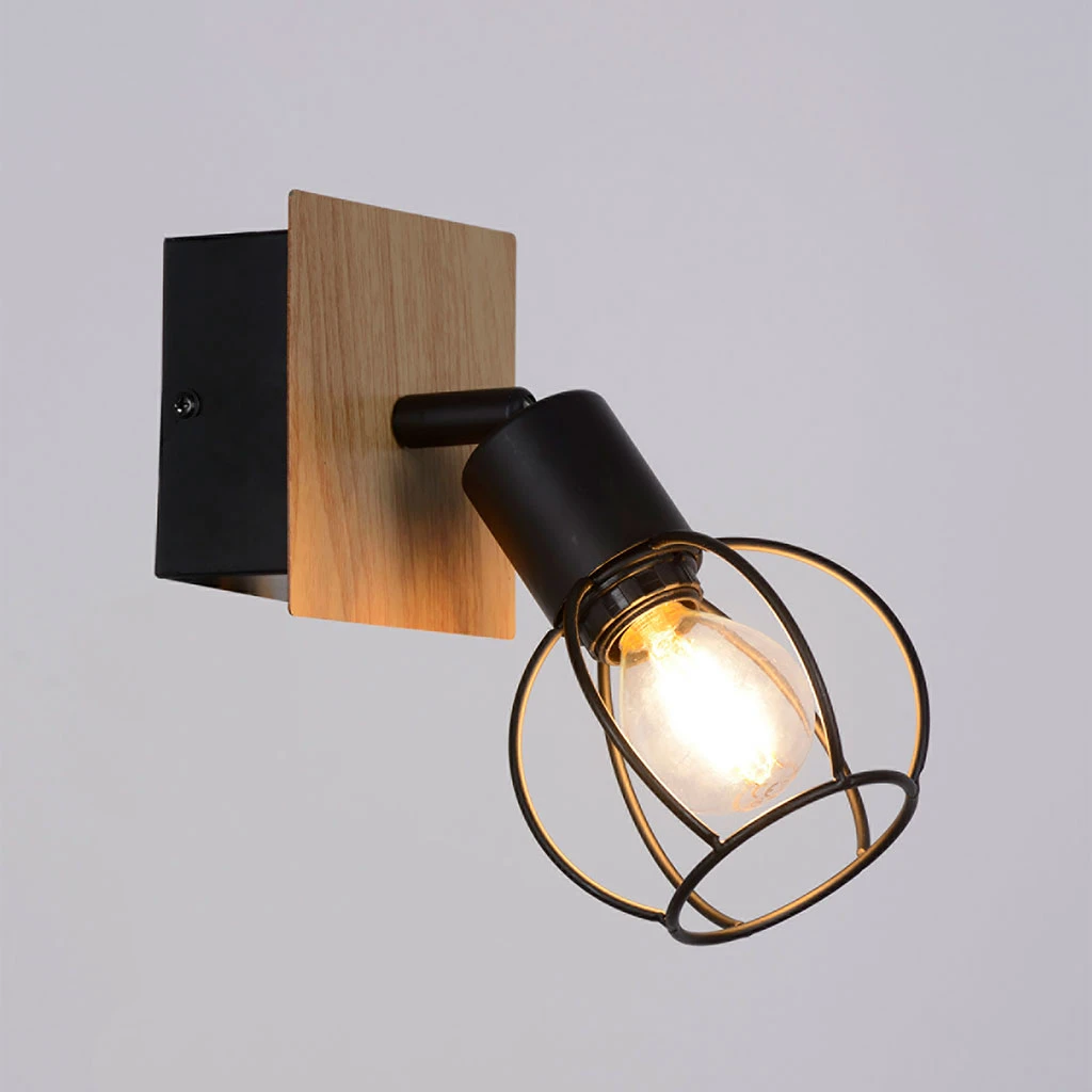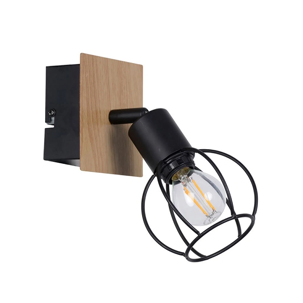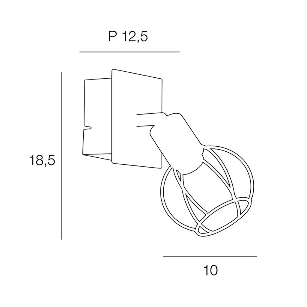 Spot 1 lumière base rectangulaire en métal peint. Abat-jour en métal filaire peint. Têtes orientables. Coloris : noir/naturel. IP20. L10cm – P12cm – H18.5cm. Classe 1. E14-40W.