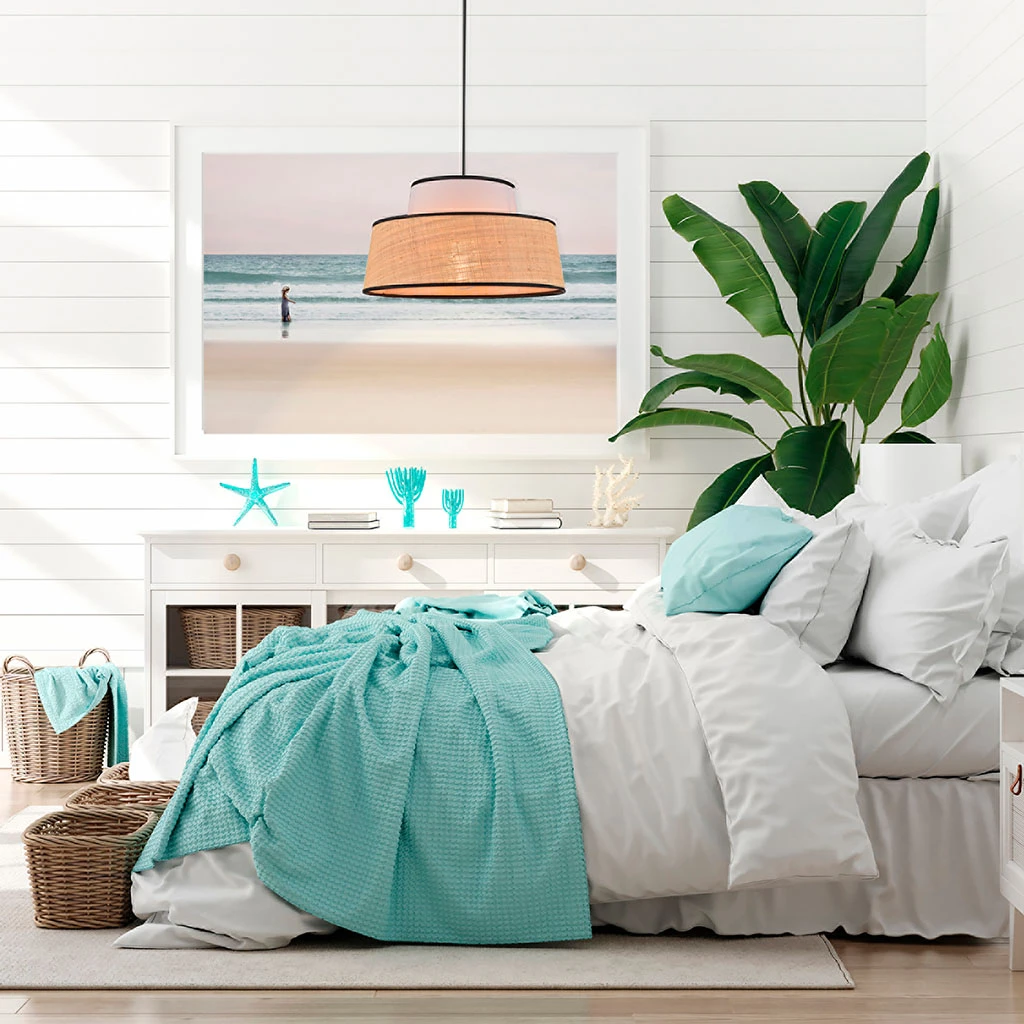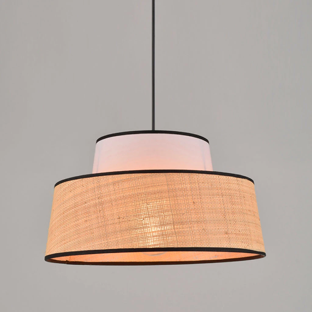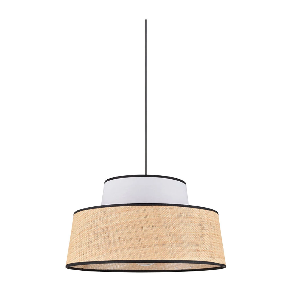 Suspension composée de 2 coniques : 1 petit en coton et le plus grand en matière naturelle raphia.