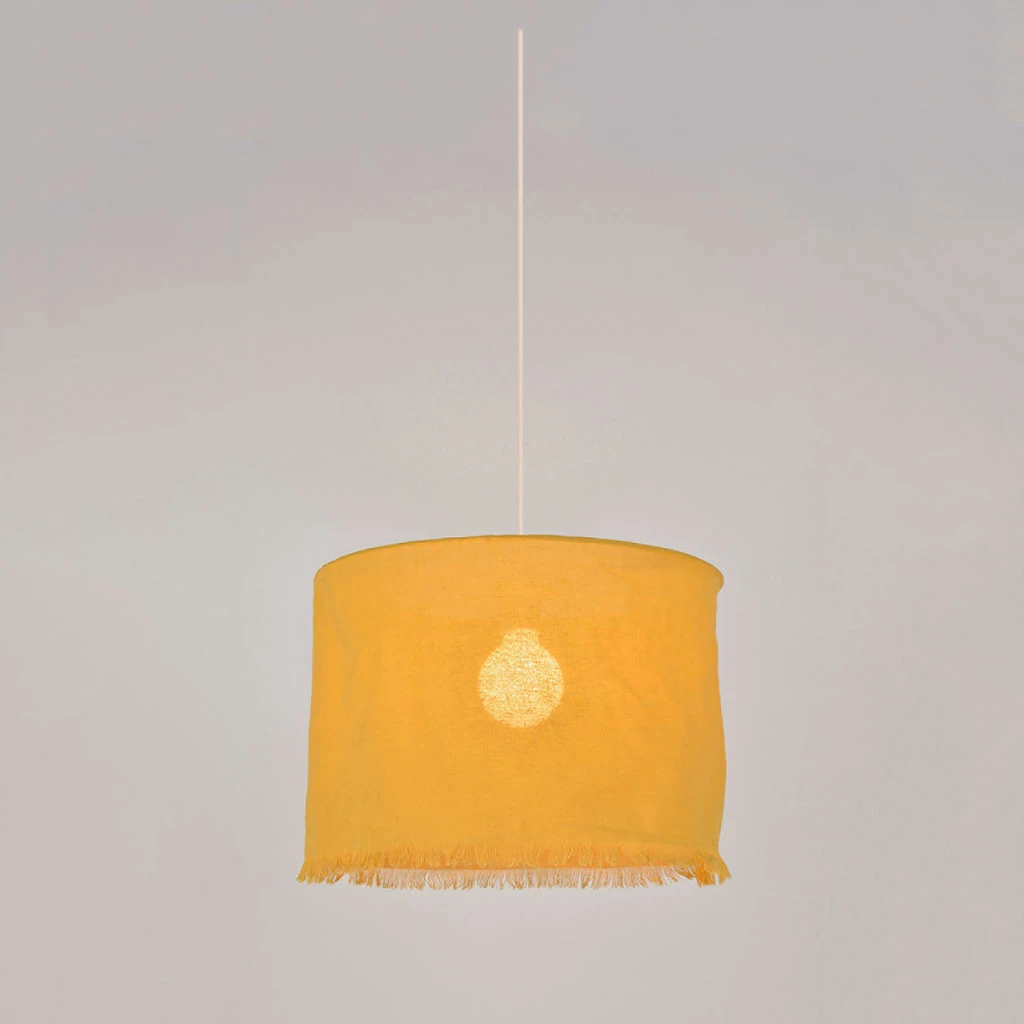 Suspension cylindre en lin fluide avec franges.