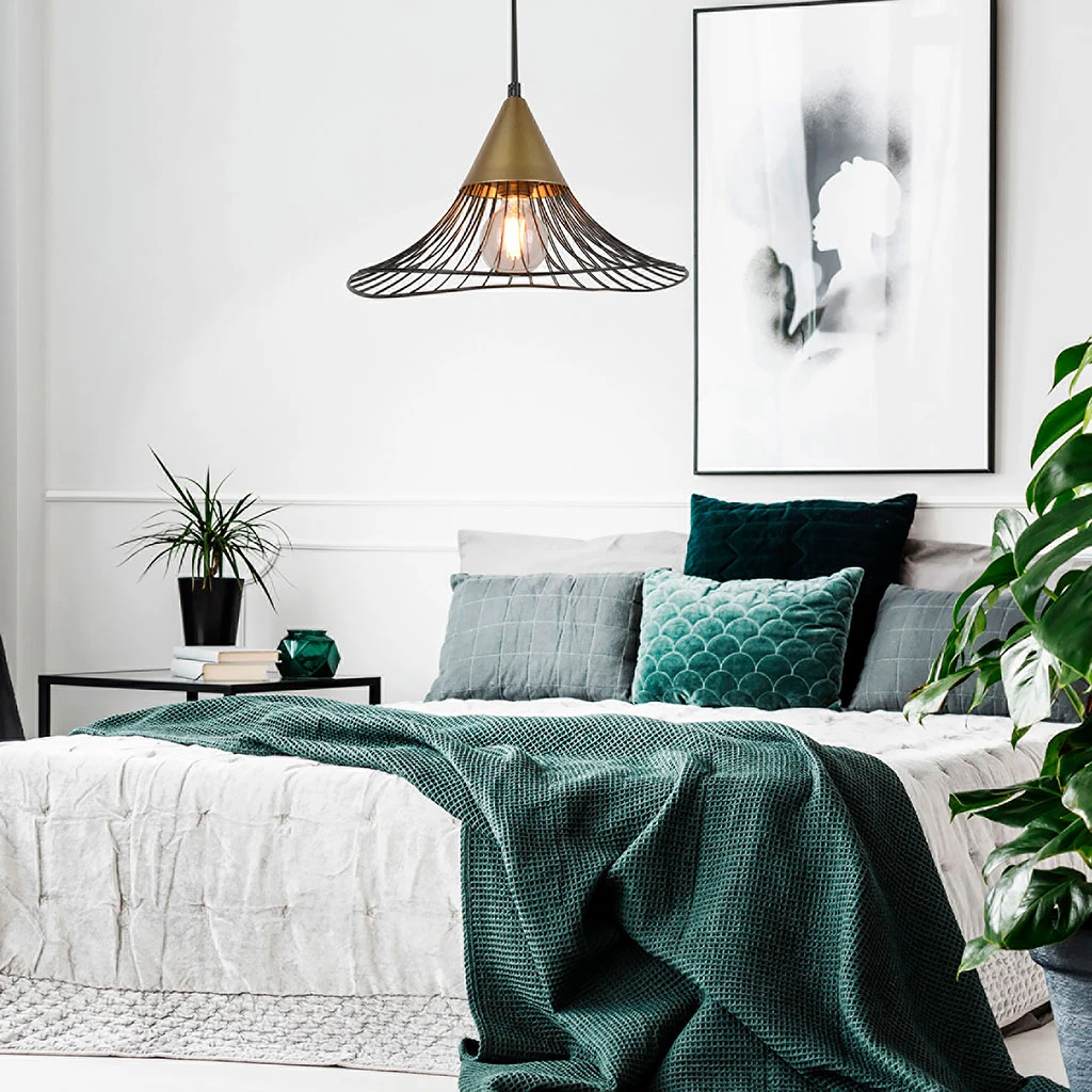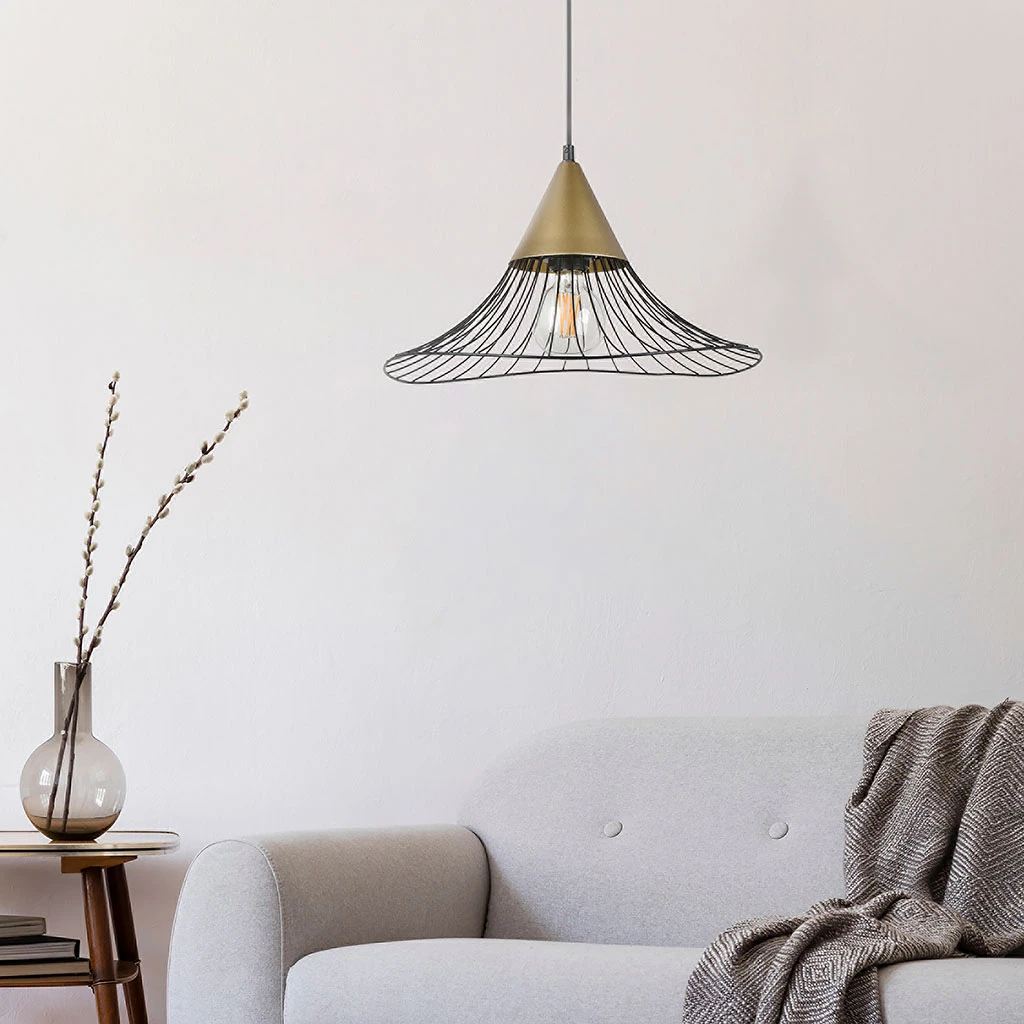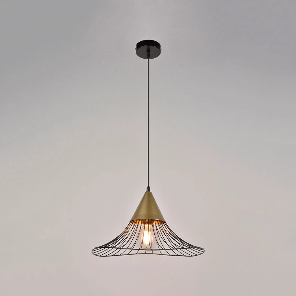 Suspension en métal filaire. Vendue avec cordelière électrique et pavillon métal peint.