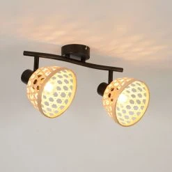 Corep Spot 2 Lumières En Métal Et Bambou L35cm Noir – Kami